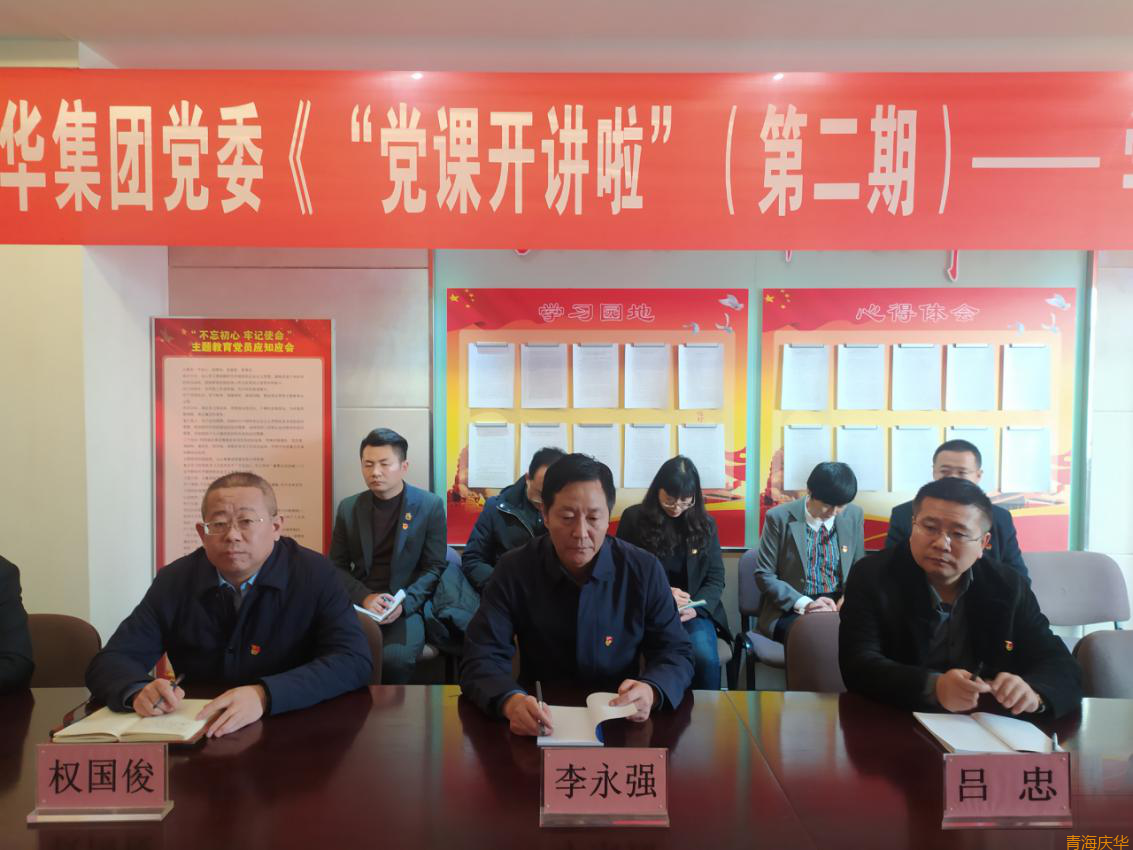 为引导广大党员做习近平新时代中国特色社会主义思想坚定信仰者和忠实实践者,增强党员教育的针对性和有效性,12月11日青海庆华集团党委组织开展了海西州《“党课开讲啦”(第二期)——学习新思想、引领新发展》微党课学习活动。青海庆华集团党委书记、总经理李永强,纪委书记、副总经理兼总会计师吕忠,党委副书记、副总经理、工会主席权国俊,以及集团机关全体党员和中层以上领导干部参加微党课学习活动。